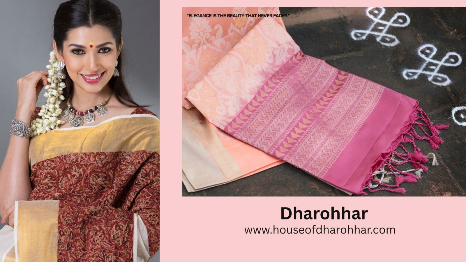 Dharohhar Women Cotton Blend Ajrak Printed Saree with Printed Unstitched Blouse Piece | Summer Special Traditional Sari | Everyday/Festive Sari - Maroon